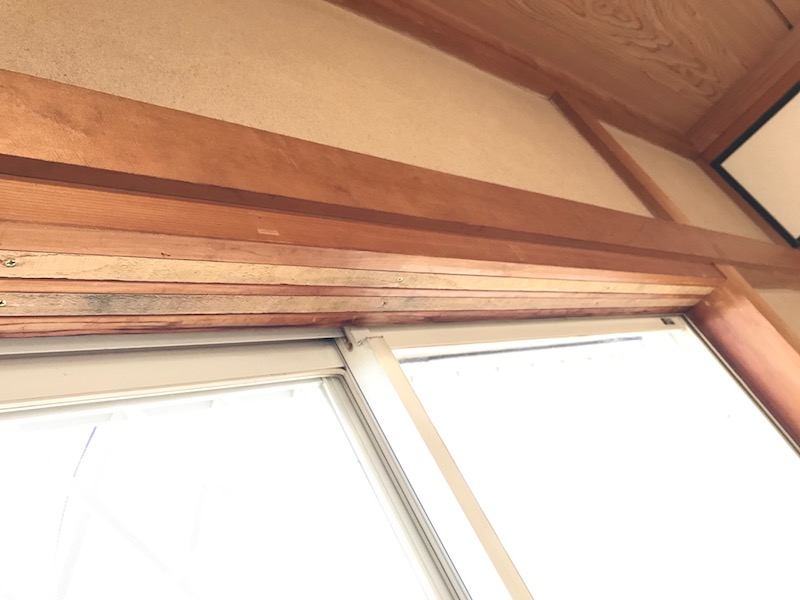 障子の上場の隙間を材木で埋めて、その上に枠を取り付けます。