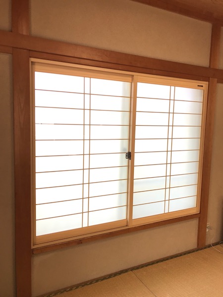 今回は内窓でもペアガラスになっていて、ガラスとガラスの間に格子が入って入るタイプです。
